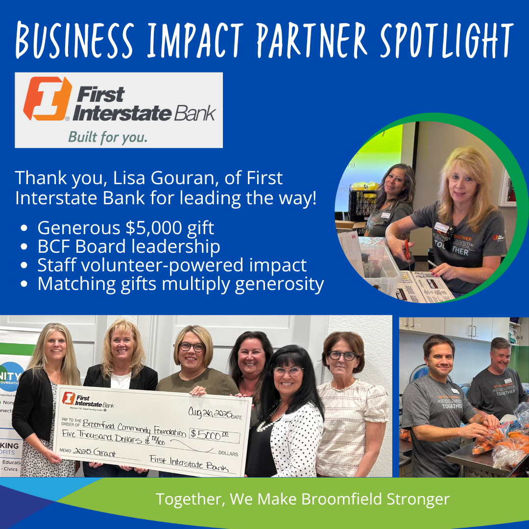 Together, with partners like First Interstate Bank, we can keep generosity and community connection strong here in Broomfield.