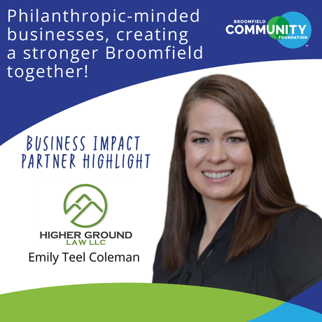 When asked what inspired her to become a Business Impact Partner, Emily shared how the Foundation’s mission aligns with her values: "My work is rooted in helping individuals plan for the future and protect what matters most. Supporting the Broomfield Community Foundation feels like a natural extension of that mission—ensuring that thoughtful planning and generosity continue to uplift our community for generations to come."