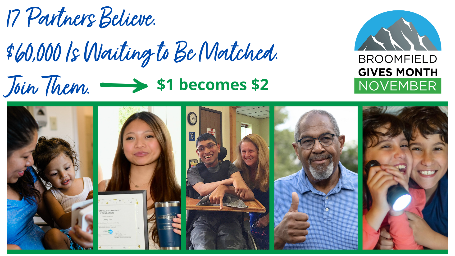 While you might not see it in your everyday life, Broomfield is not immune to today's challenges. Our local food pantries and the city's Meals on Wheels program are working tirelessly to feed many of our neighbors. Local children are in desperate need of medical support and school supplies. Job loss and persistent struggles have created a pressing need for mental health services and income-aligned housing. The list goes on.