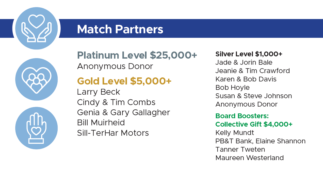 The great news is that your donation will be matched as part of our Match Partner Challenge!