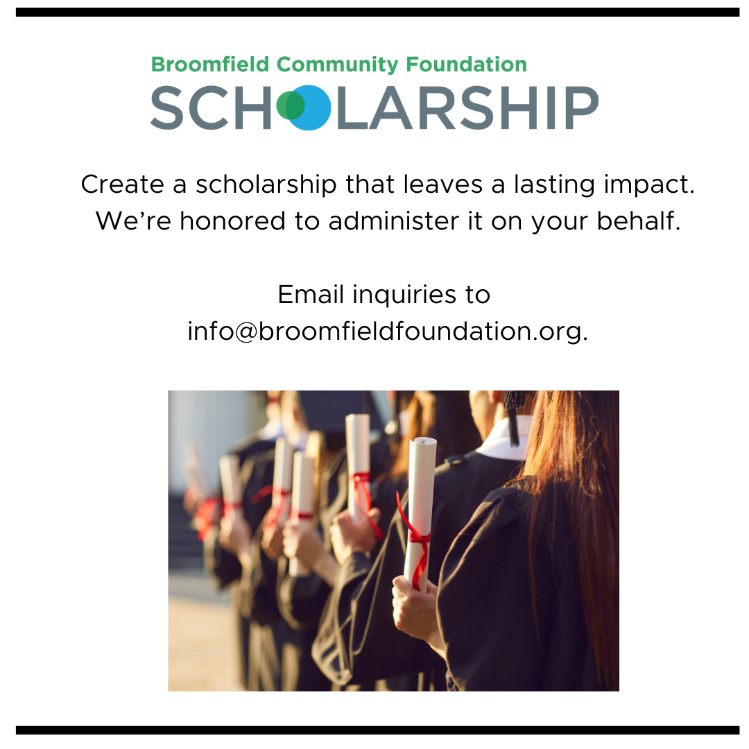 The Broomfield Community Foundation is proud to administer scholarship funds created by individuals, families, corporations, and organizations dedicated to supporting education in our community. These scholarships are tailored to help students achieve their academic goals beyond high school, offering crucial financial assistance that makes higher education more accessible.