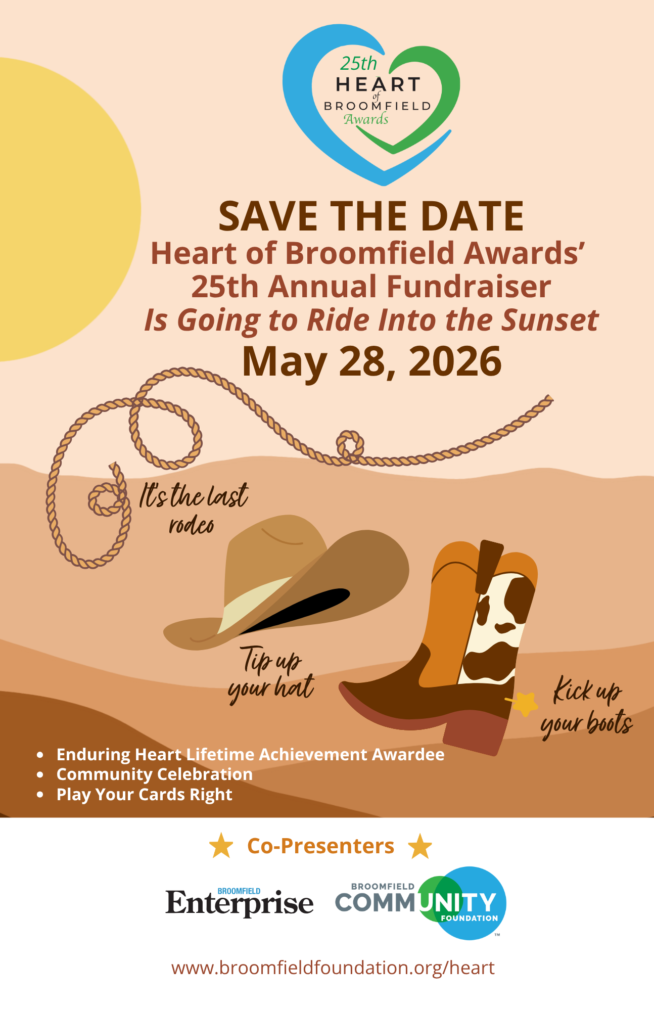 Join us for the 25th and final Heart of Broomfield Awards, a milestone celebration honoring the people and generosity that have shaped our community for a quarter century.