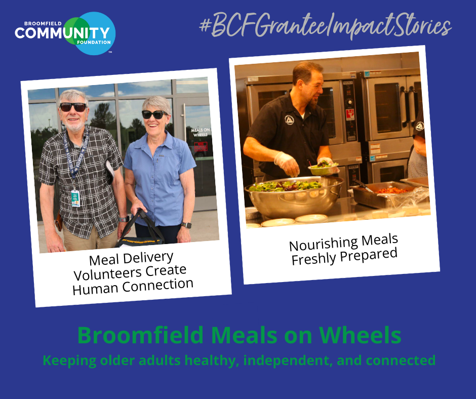 Through the City and County of Broomfield Meals on Wheels program, older adults are supported in remaining healthy, independent, and able to age safely in their own homes. With support from local partners — including the Broomfield Community Foundation — the program continues to meet a rapidly growing need in our community.